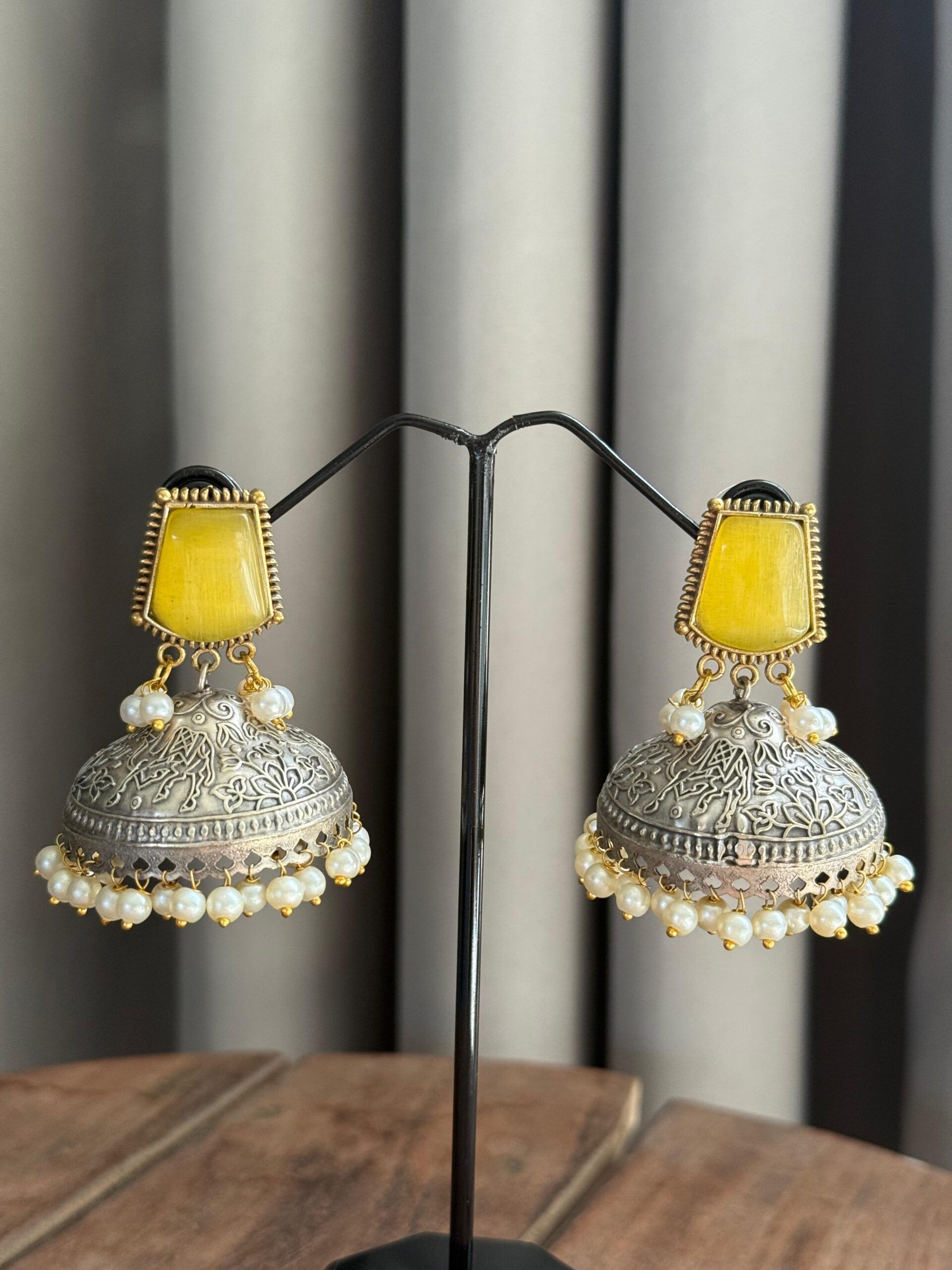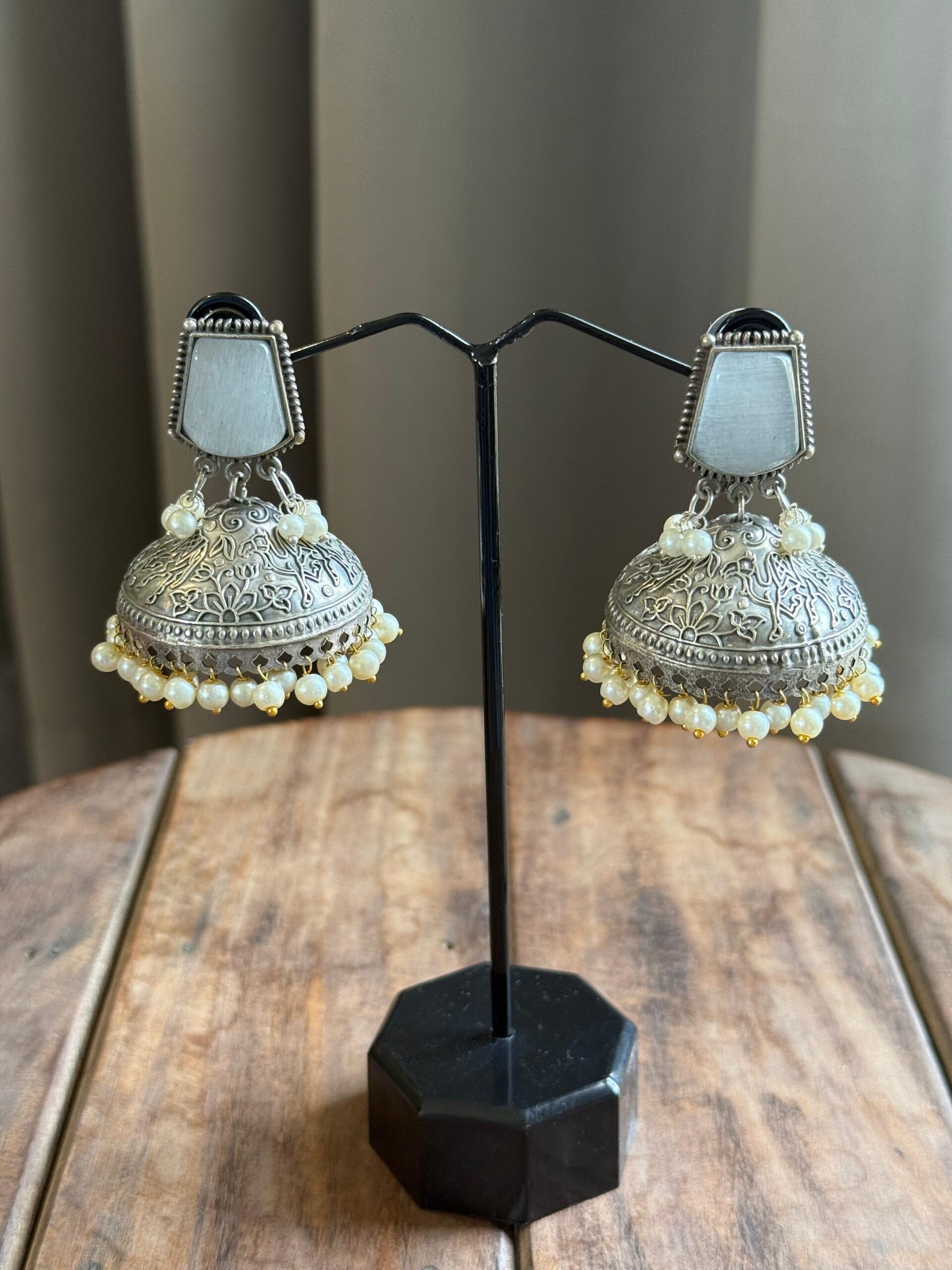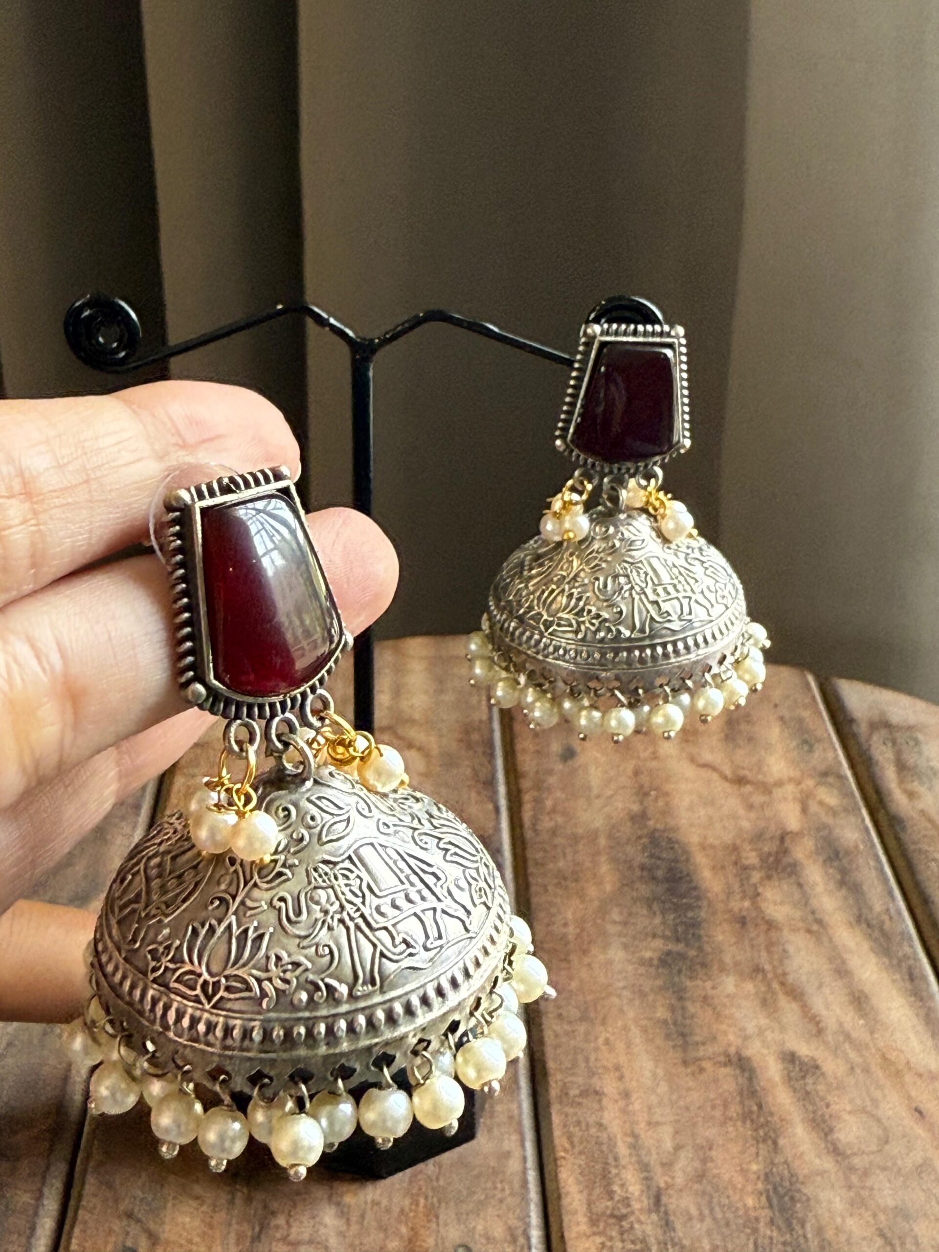 Care : Keep away from moisture, perfumes, lotions, and cleaning agents to preserve the oxidized finish. After use, gently wipe with a soft cloth and store separately in a dry pouch.