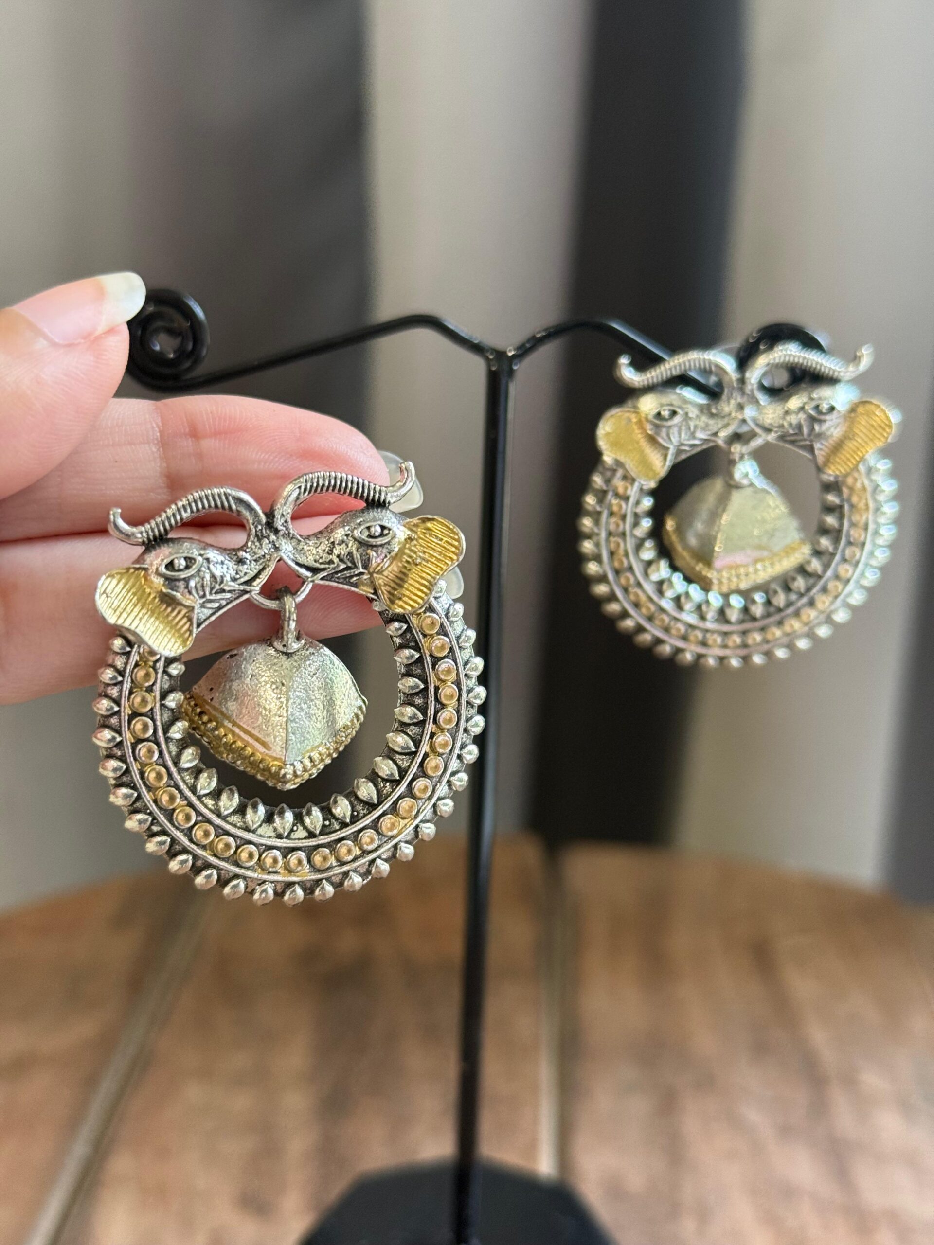 Care : Keep away from moisture, perfumes, lotions, and cleaning agents to preserve the oxidized finish. After use, gently wipe with a soft cloth and store separately in a dry pouch.