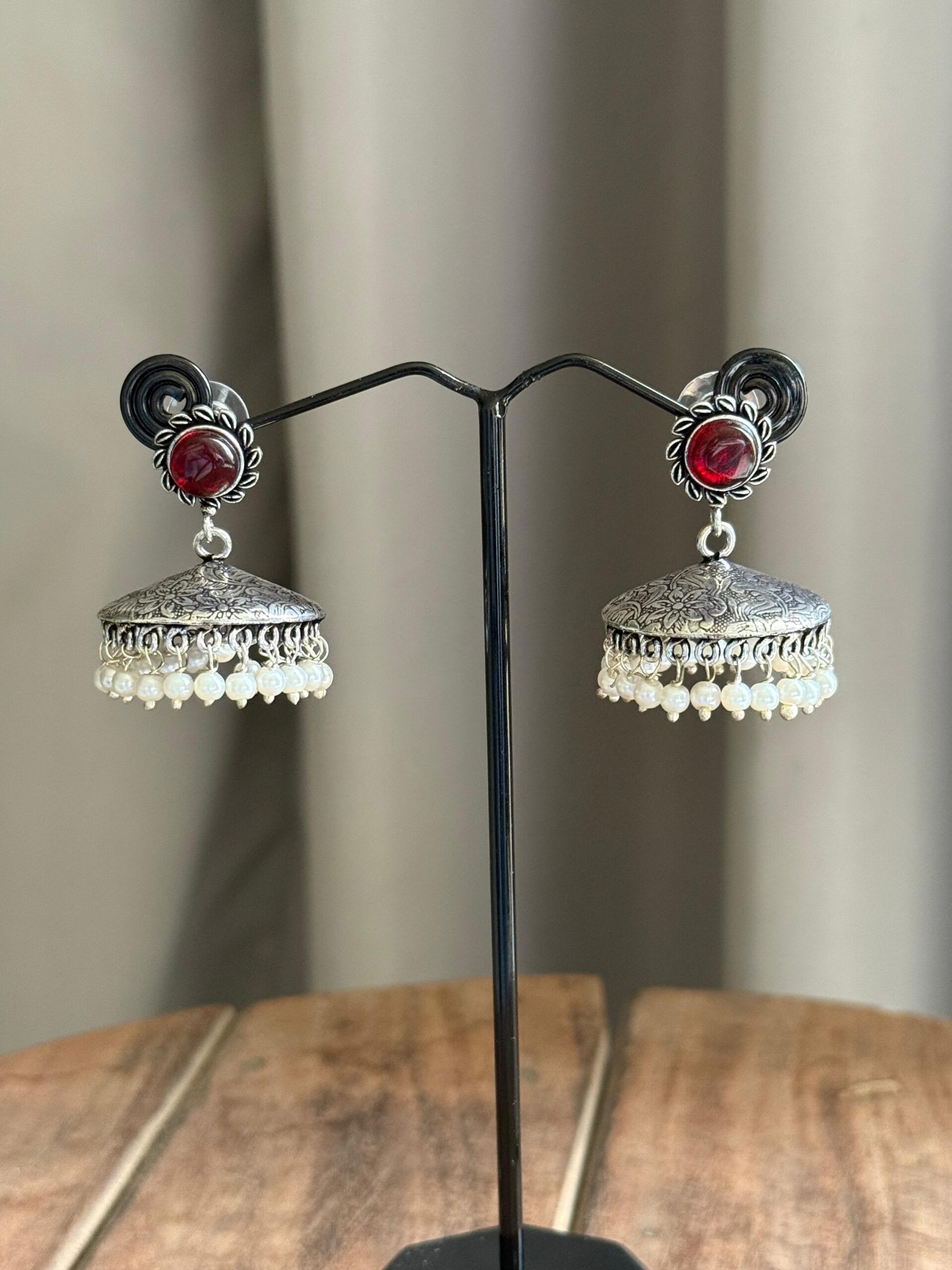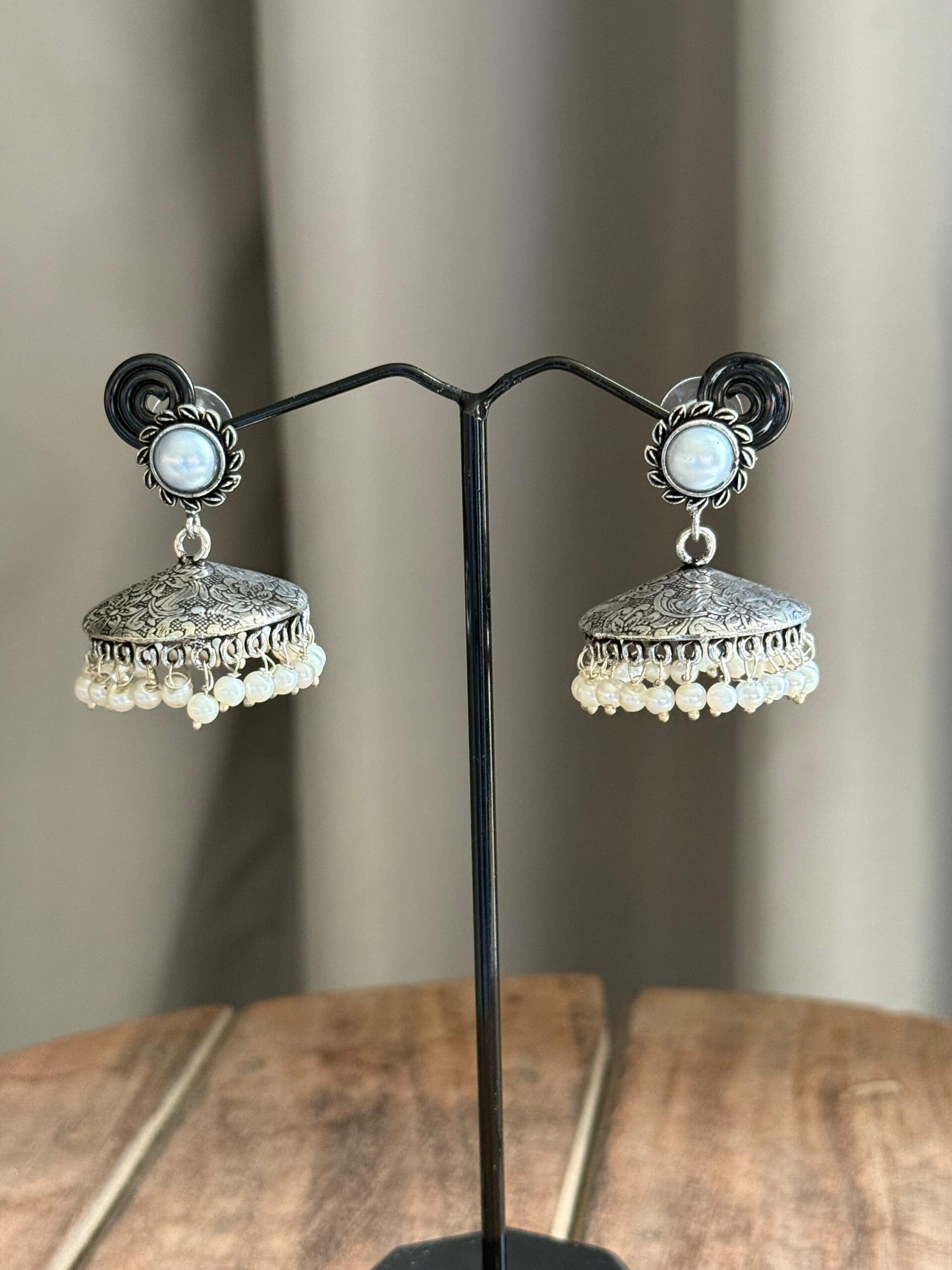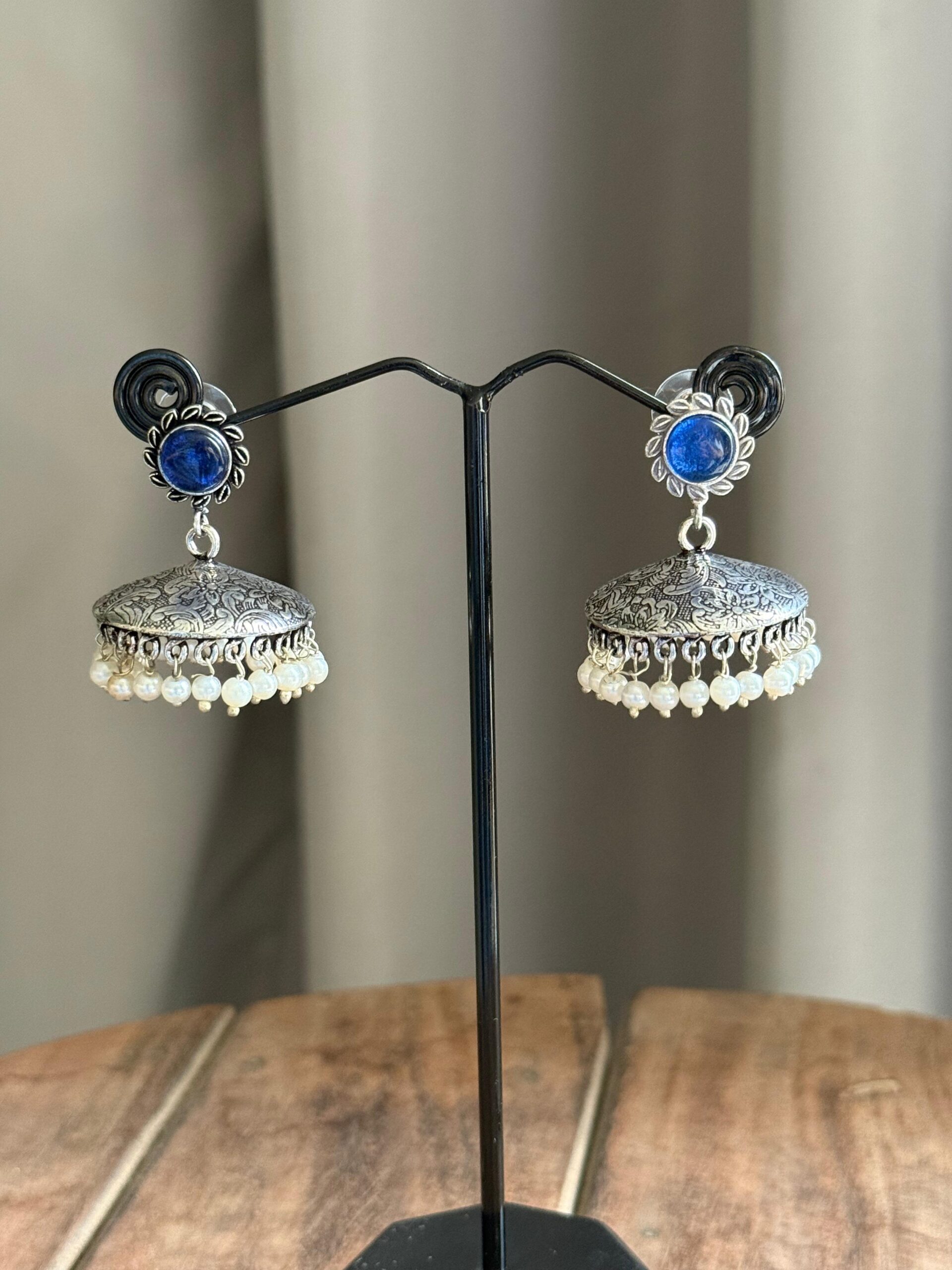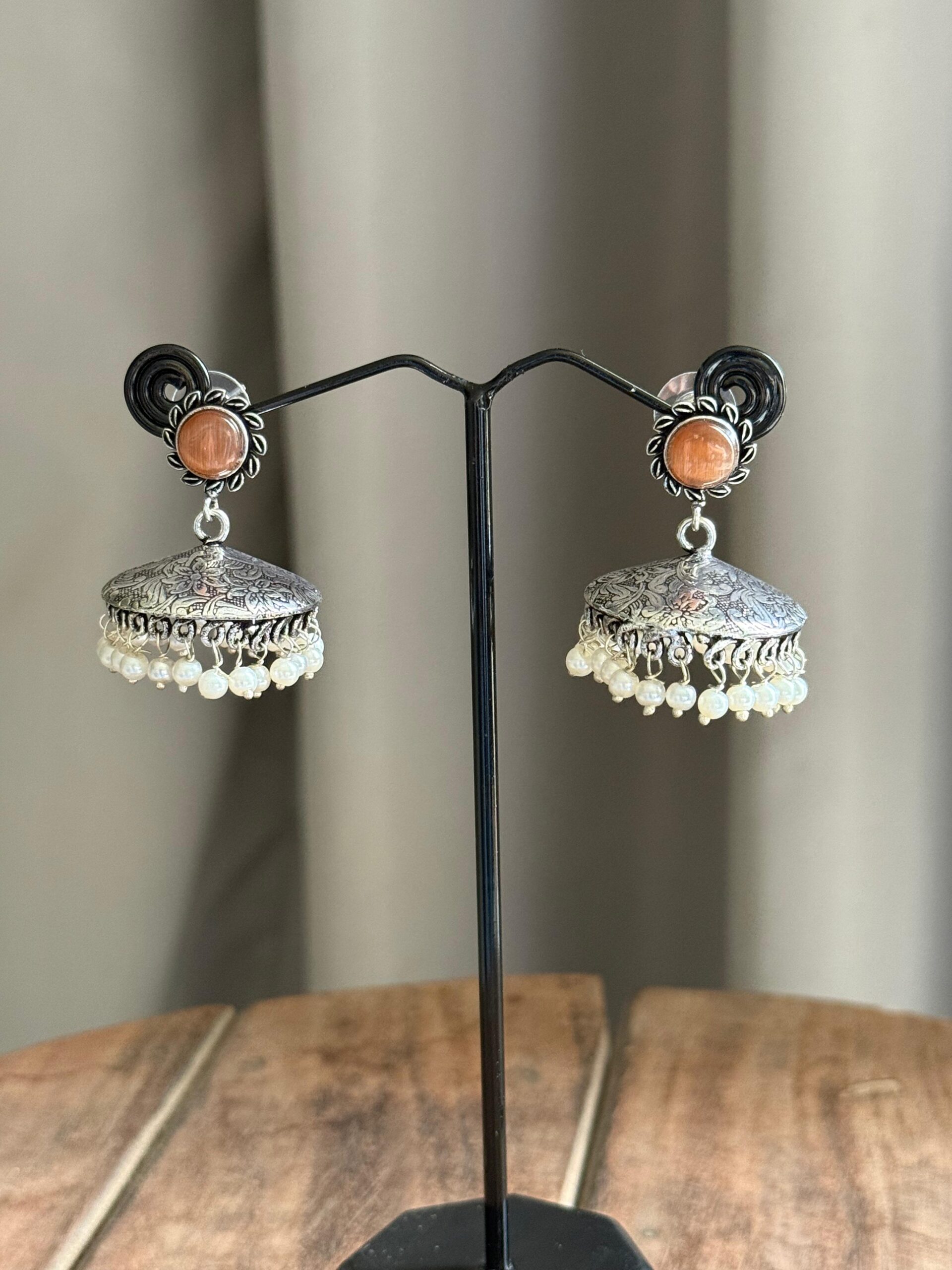 Elevate your jewelry collection with these stunning flat disk jhumkas accented by sparkling stone studs. The sleek, circular disks provide a modern minimalist base, while the shimmering stones add a touch of glamour and sophistication. Lightweight and versatile, these earrings effortlessly complement both traditional and contemporary outfits, making them perfect for any occasion.